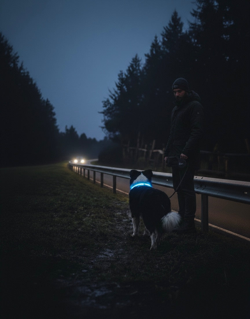 La nuit, un chien sans lumière est presque invisible pour les voitures ou cyclistes. Avec ce collier lumineux, il est vu à distance et vous réduisez drastiquement les risques d'accident lors de chaque sortie nocturne.